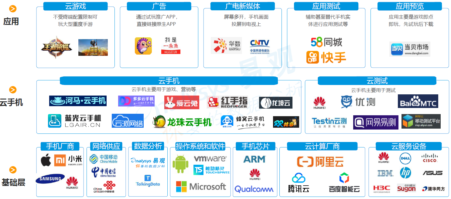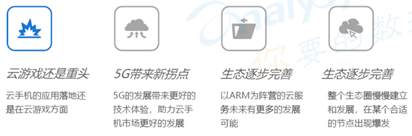 | 主要功能 | 本地云端的基于ARM的云服务 | 基于海马云计算和移动虚拟化桌面服务移动内容云计算,海马云端托管,应用7*24小时在线 | 主打玩游戏和微营销 | 主打云游戏、云视频、云应用等功能 | 移动办公、云端游戏 | 云游戏、云社交、云乘车、云办公等 |